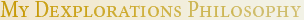 I draw all my Dexplorations on the computer. I do not use photographs, 3D software, fractal generators, Photoshop filters, image tracing or other semi-automatic ways of creating images. The Dexplorations are created wholly “ex nihilo” by my hand and eye and mind: I simply draw, arrange and color shapes. My chief tool for this work is a great vector illustration program called Xara Xtreme. On occasion, I will also use some functions in Adobe Illustrator. In addition I use Adobe Photoshop for all web site graphics and Adobe InDesign for my layout and typesetting needs.