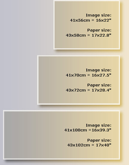 I make all my prints 41cm (16") high, leaving a 1cm (0.3") white border all around.